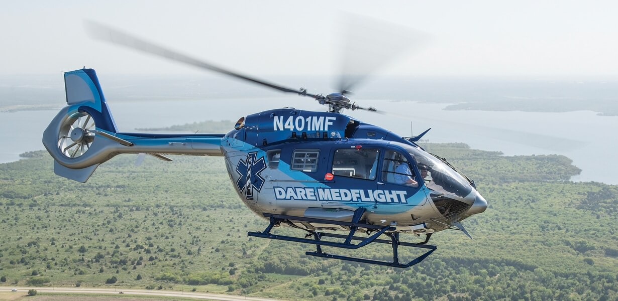Dare MedFlight is a state-of-the-art Airbus H145 with a range of approximately 400 miles and cruising speed of 150 miles per hour.