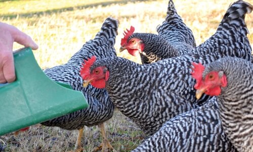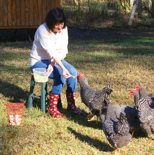 Yes, Rollason is crazy about her hens. She feeds them only their favorite meals, which include fresh fruits, vegetables, and special treats like bread and sunflower seeds. In the late evenings, especially during the winter, Rollason will give the Lucys cracked corn to help increase their body heat before they go in to roost.