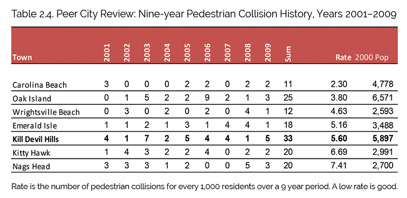 Worn path shows pedestrian demand along US 158 despite the lack of a sidewalk. Table 2.4 and image courtesy of KDH Pedestrian Plan.